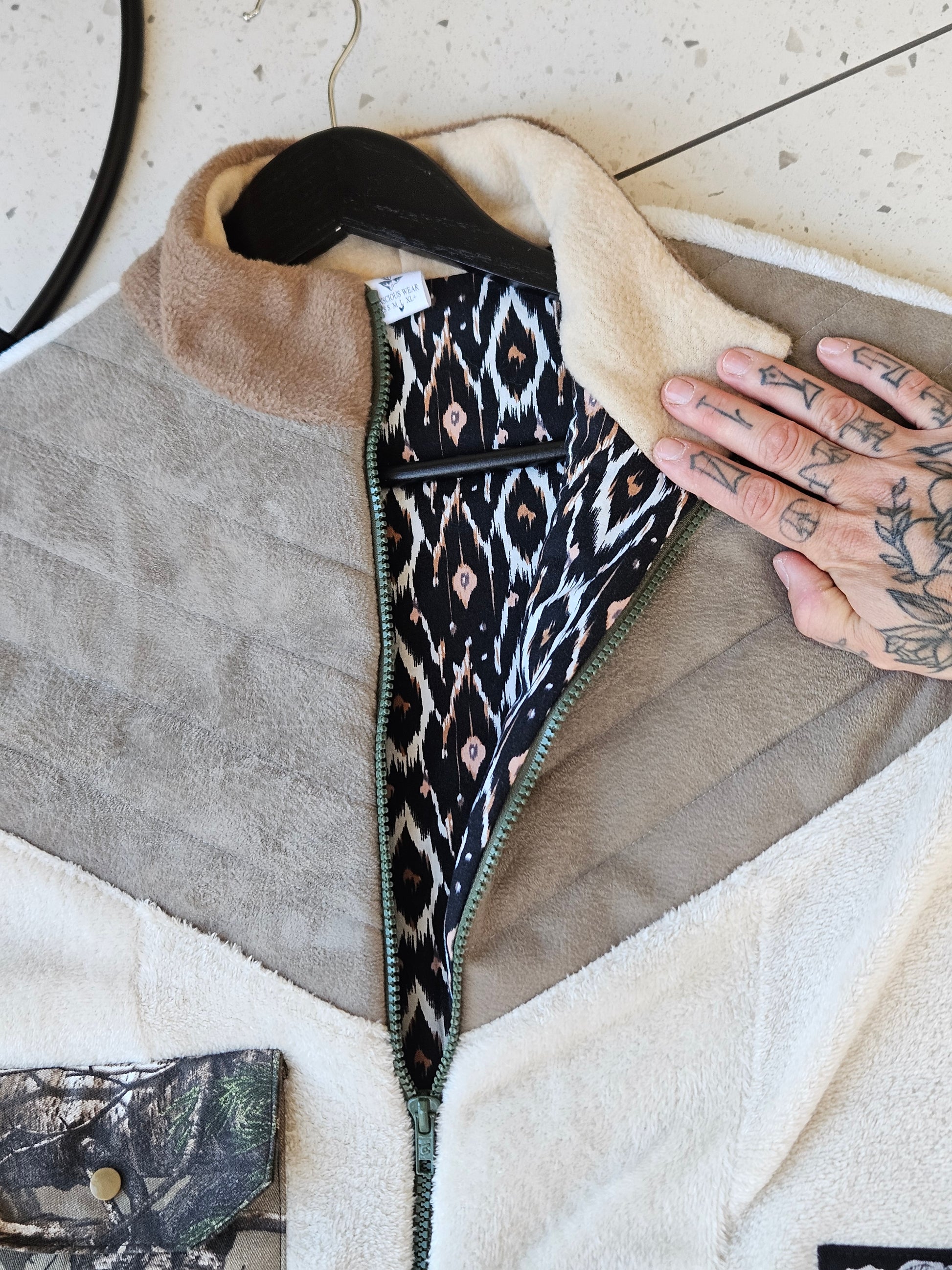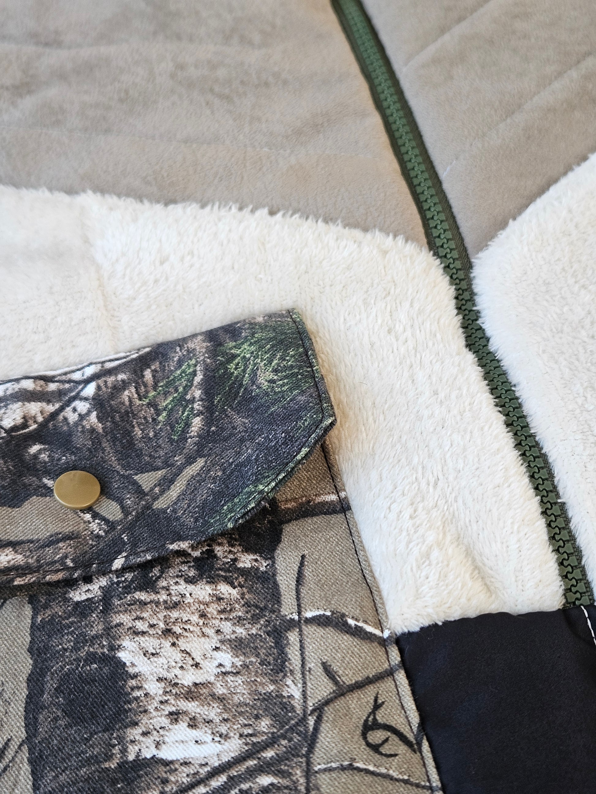 Polar doublé avec serre ajustable et attache pour les clés à l'intérieur de la poche.