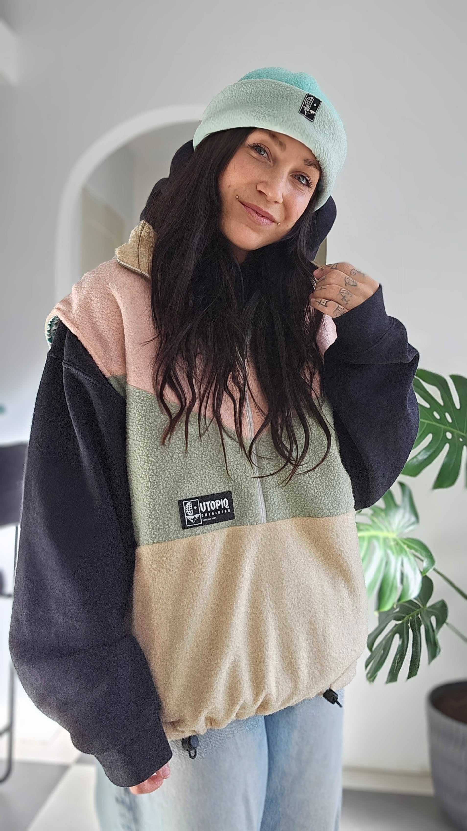 Polar sans manche doubler avec serre ajustable et attache pour les clés à l'intérieur de la poche.