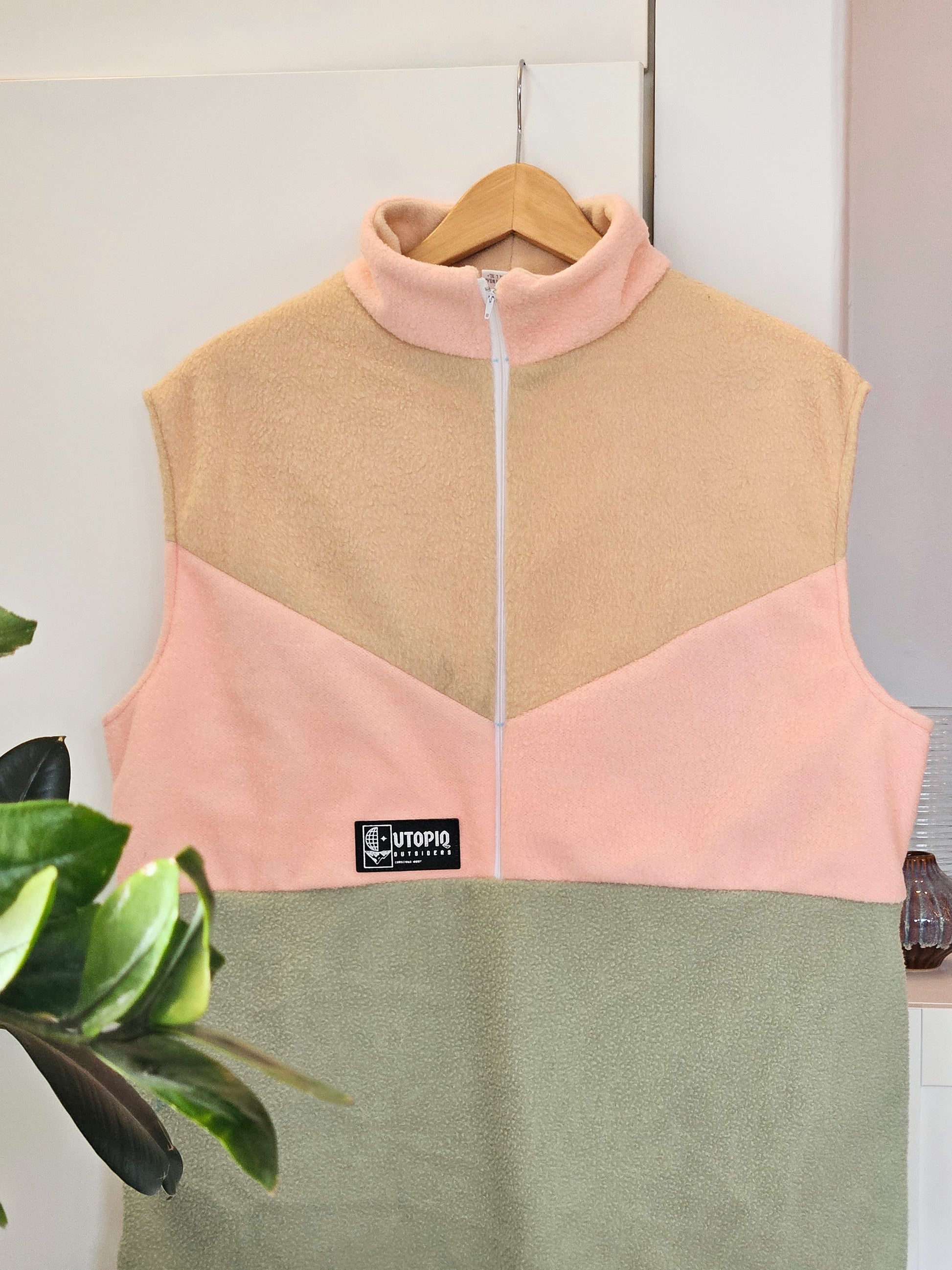 Polar sans manche doubler avec serre ajustable et attache pour les clés à l'intérieur de la poche.