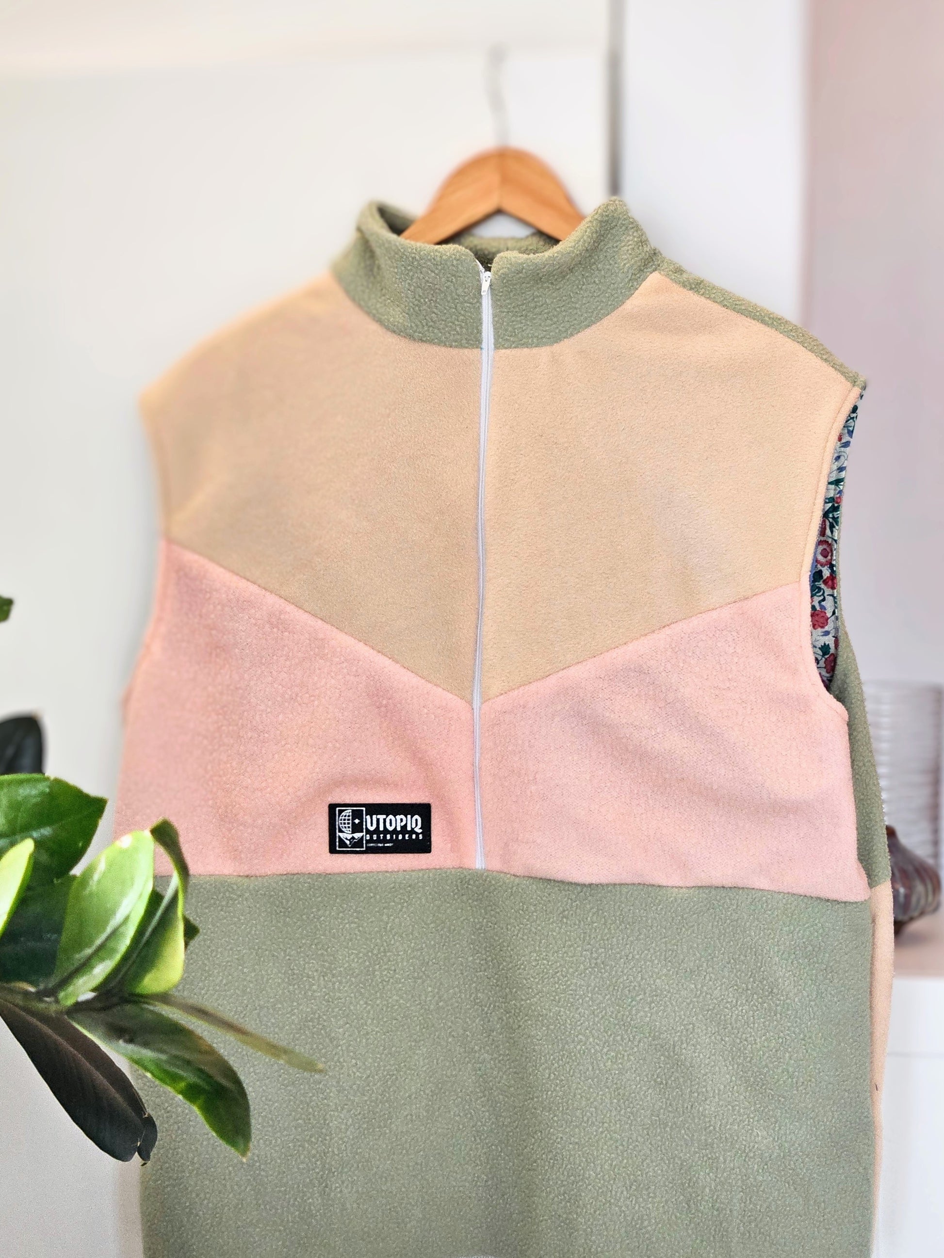 Polar sans manche doubler avec serre ajustable et attache pour les clés à l'intérieur de la poche.